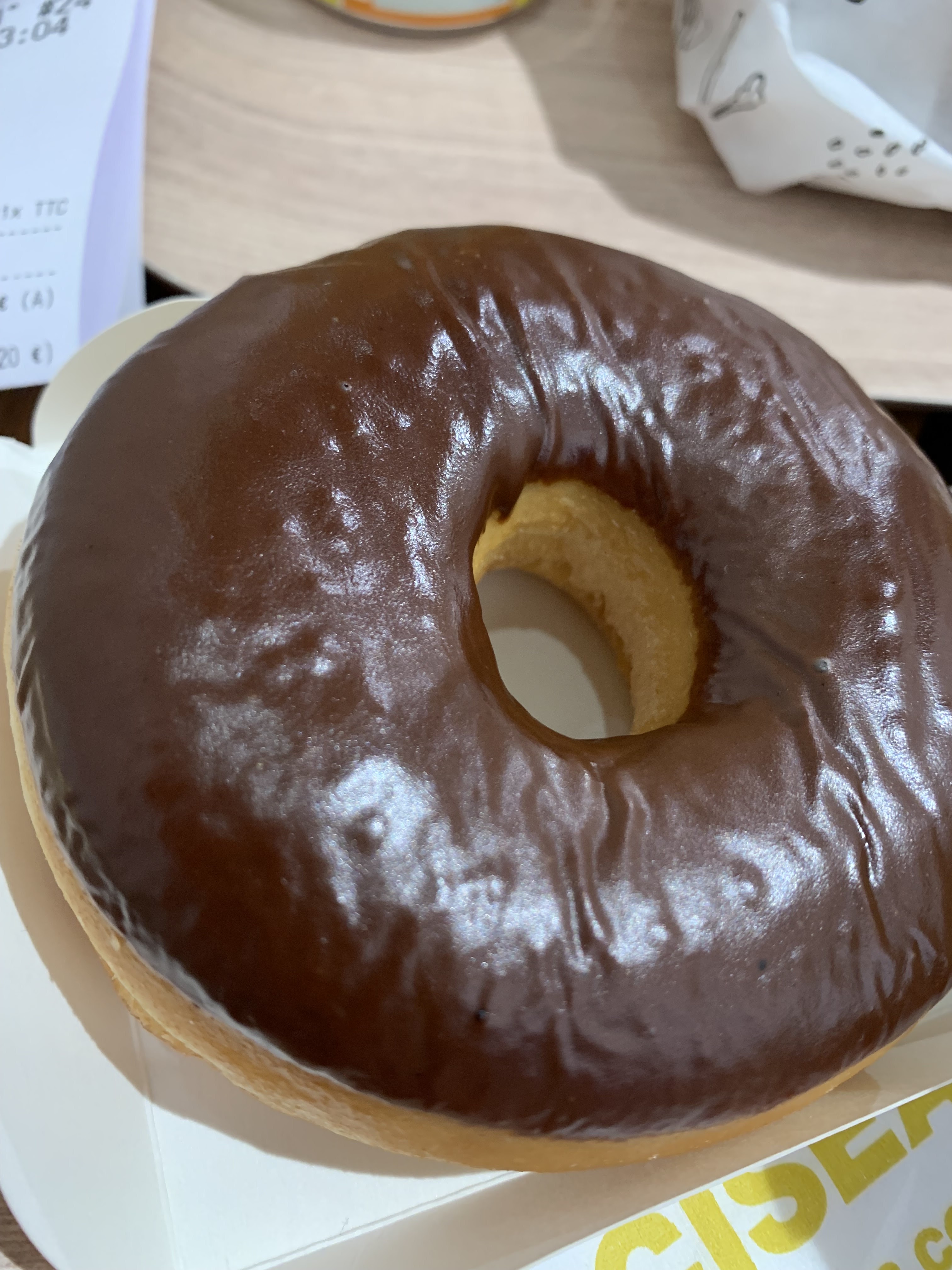 Cherchant des donuts pour mes collègues et moi même, je me suis retrouvée devant une borne avec très peu de choix par rapport à la vitrine. Je me suis donc avancée chez une vendeuse demandant comment commander, elle m’a donc indiquer d’attendre devant la caisse. Au bout de quelques minutes un monsieur vient pour m’encaisser alors que je n’ai pas encore commandé. Je lui explique ma situation et là il me dit qu’il faut surtout pas faire ça et utiliser les bornes mais ne comprenant pas le choix des bornes cela était compliqué. Il m’a donc envoyé devant la vitrine pour choisir en me disant « dépêchez vous » pour en suite me dire que ma commande ne « m’arrange pas » sur un ton peu sympathique. De plus, les emballages sont remplis de chocolat à l’intérieur comme à l’extérieur.. super pour le transport. Une première et dernière fois pour mes collègues et moi même.