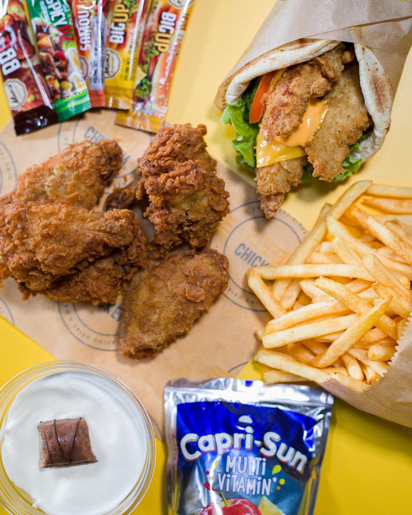 Commande passée ce jour via uber Eats. Après avoir entendu tant d’éloge sur la chaîne c’est une déception totale. Les sauces qui ont été explicitement demandées n’ont pas été misent dans la commande. Il n’y avait pas de serviette dans le sac. Les sandwichs ne sont ni numérotés ni annotés ce qui pose un réel problème pour la répartition. De plus, ils sont fades et se ressemblent tous, si bien que même une fois fini on ne sait toujours pas quel sandwich appartient à qui. Les frites sont sèches et sans goûts, elles ont finies à la poubelle. Les wings n’ont rien de transcendant et les tenders sont fades. Pour conclure, les commandes semblent être faite à la va vite et au niveau gustatif rien d’alarmant mais rien d’exceptionnel. Le rapport qualité/prix n’y est pas et je ne recommande pas. Cette enseigne semble de toute évidence sur cotée.