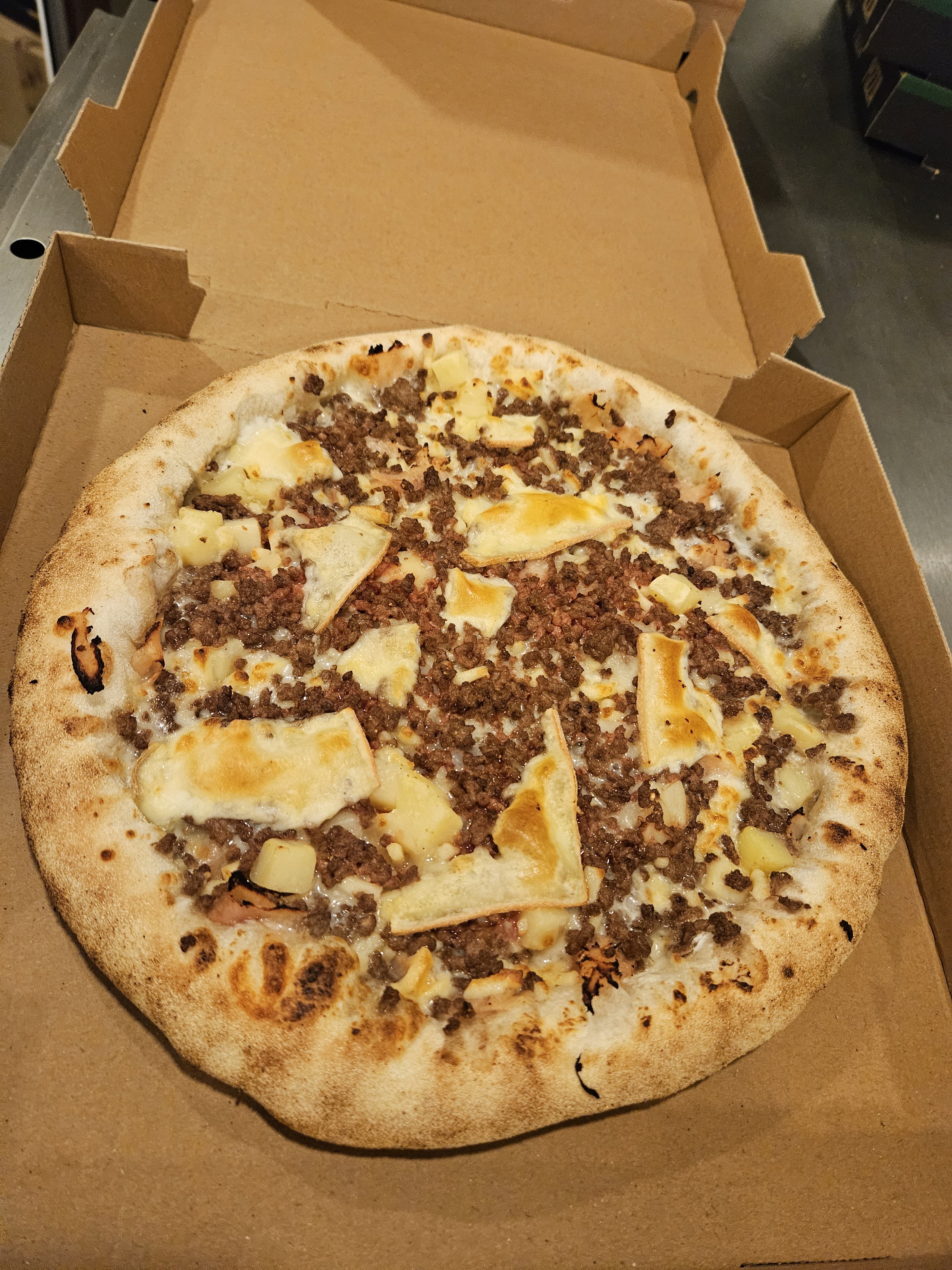 Cette pizzeria n’est pas à mon goût, je ne dirais pas que c’est infecte mais je pense qu’il faut revoir les ingrédients.. Les pizzas sont-elles surgelées ? Je trouve qu’il y avait beaucoup d’eau dans la pizza… J’ai pris une orientale, vous êtes la seul pizzeria à mettre un œuf dessus ???? Faites vous votre propre avis, mais moi je ne reviendrai plus. Surtout pour 13,50e