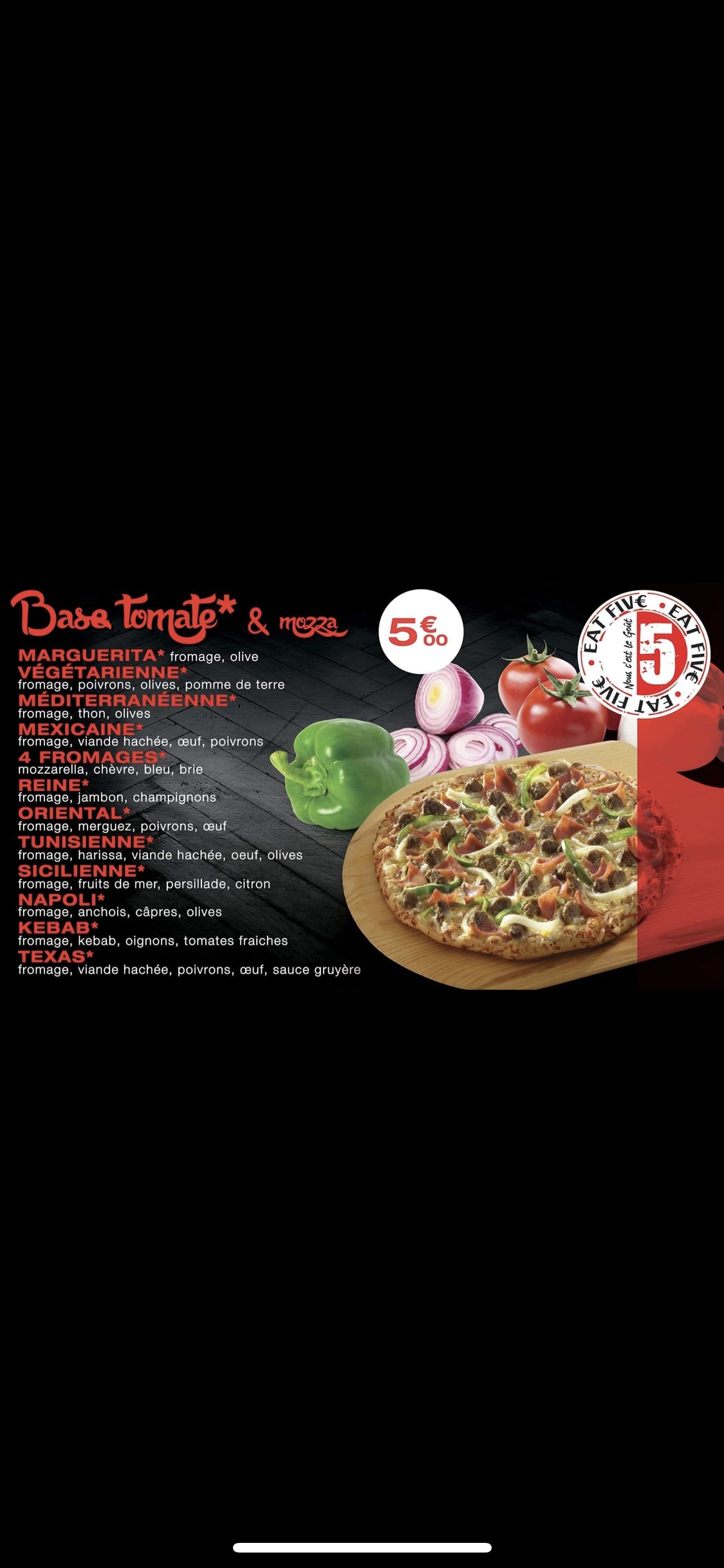 Horaire fausse et après minuit 2€ en plus alors qu’il s appelle Eat five (manger pour 5€) après ces des tunisien c nrml