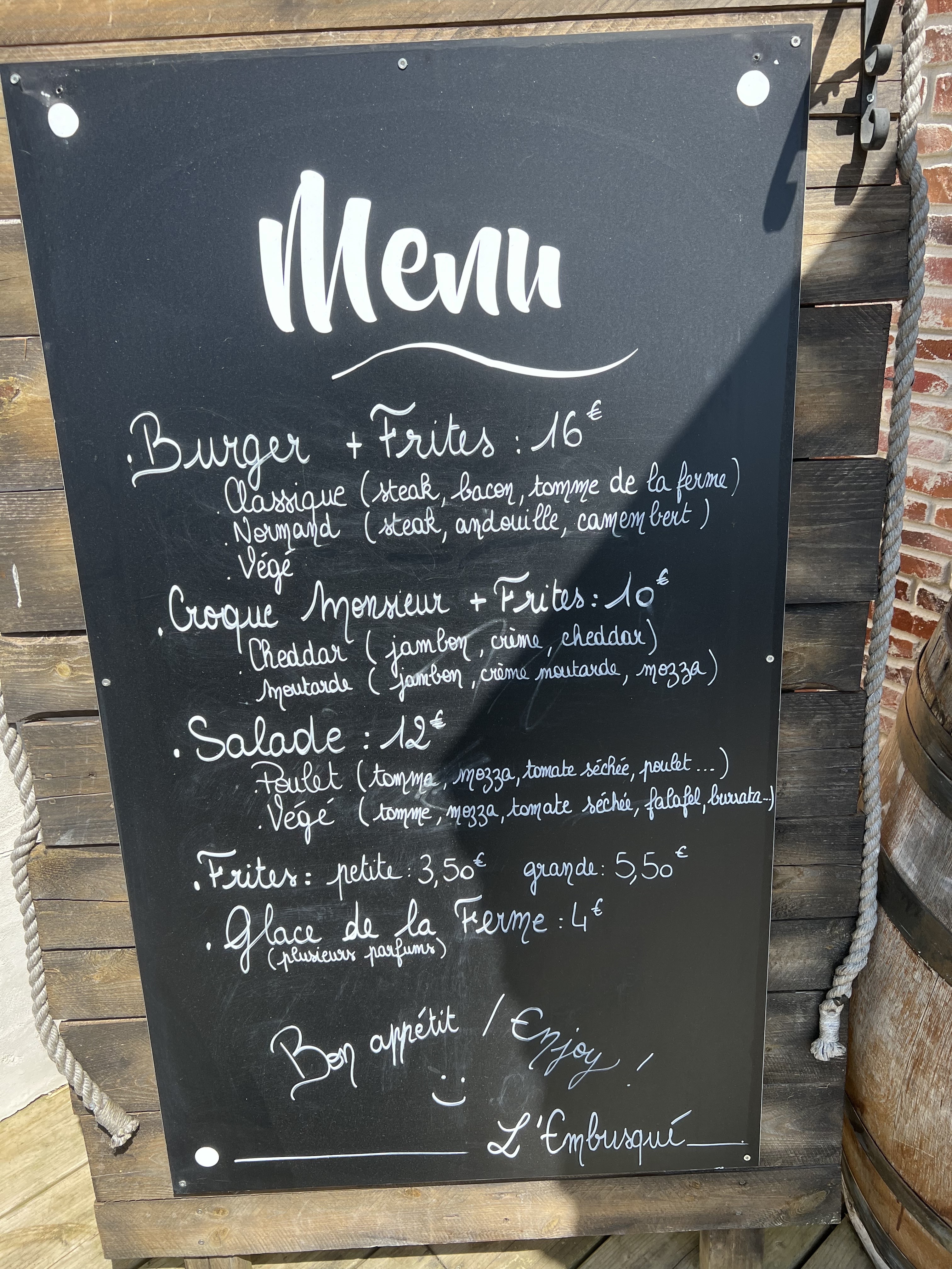 Petit espace de restauration rapide, les produits sont frais et locaux. Les burgers sont excellents et copieux. Le tout accompagné d'un bon cidre local. Et pour les gourmands je vous conseille la crème glacée au Calvados.. Un délice, ça transpire la bonne crème locale et juste le parfum pas trop prononcé de Calvados.