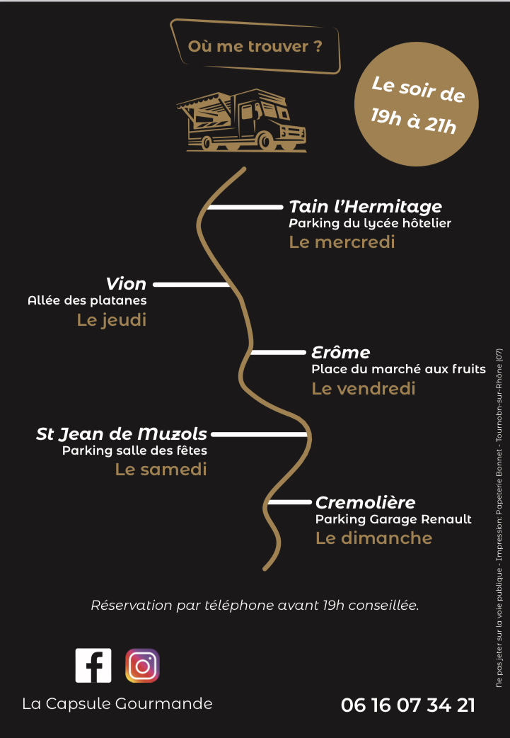 Voici toutes les informations sur le Restauration rapide La Capsule Gourmande qui ce trouve au 20 Voie Romaine, 07300 Saint-Jean-de-Muzols (07). Sur cette fiche vous trouverez les photos, l'adresse, les horaires d'ouverture, le numero de téléphone et les avis clients.Vous pouvez églement rédiger un avis si vous le souhaitez en bas de page.
