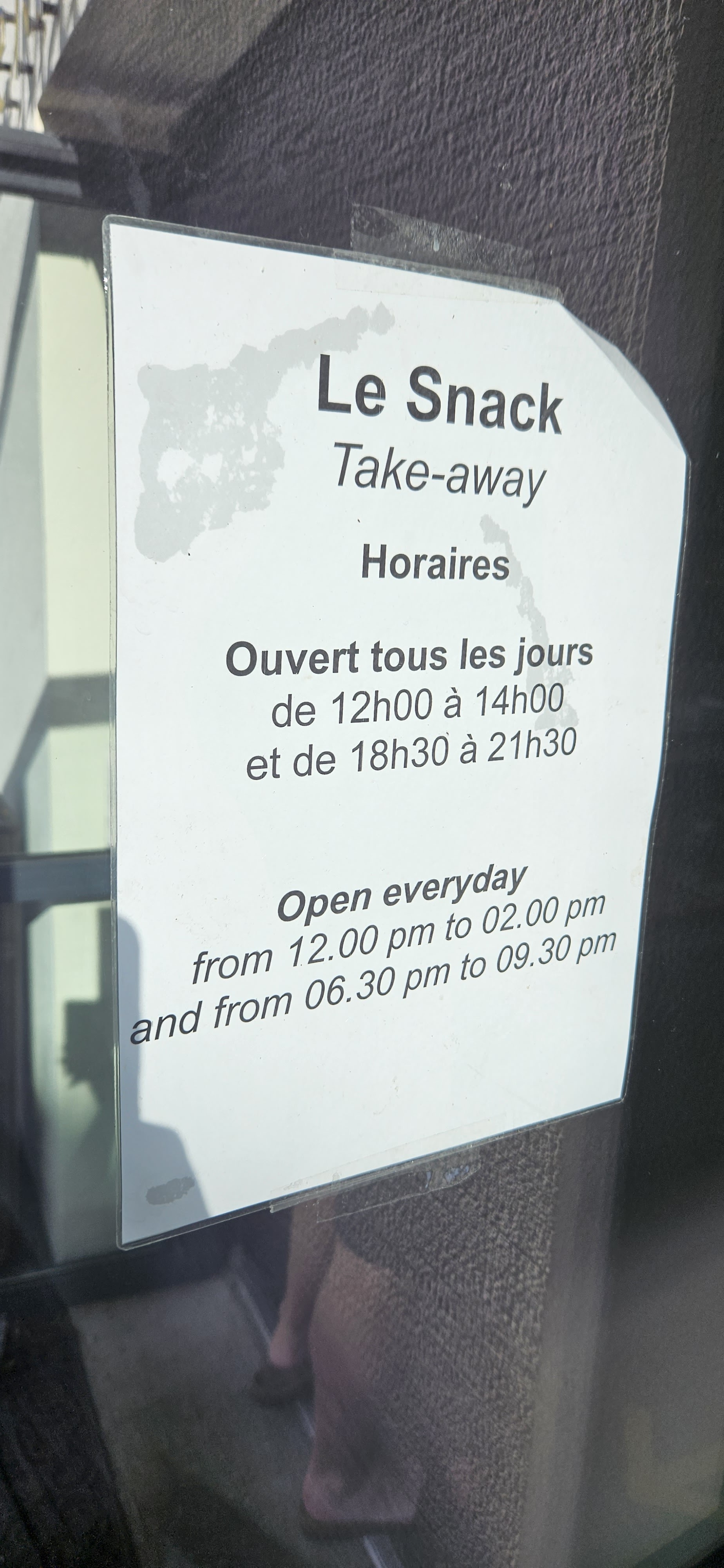 Personnel dépassé, je ne peux pas juger les pizzas nous avons pris Burger et kebab, vraiment pas top et pour un prix excessif. Dans un camping on sait que les prix sont élevés mais au minimum y mettre un peu de qualité. C est un snack juste pour dépanner on y va pas pour le plaisir de bien manger