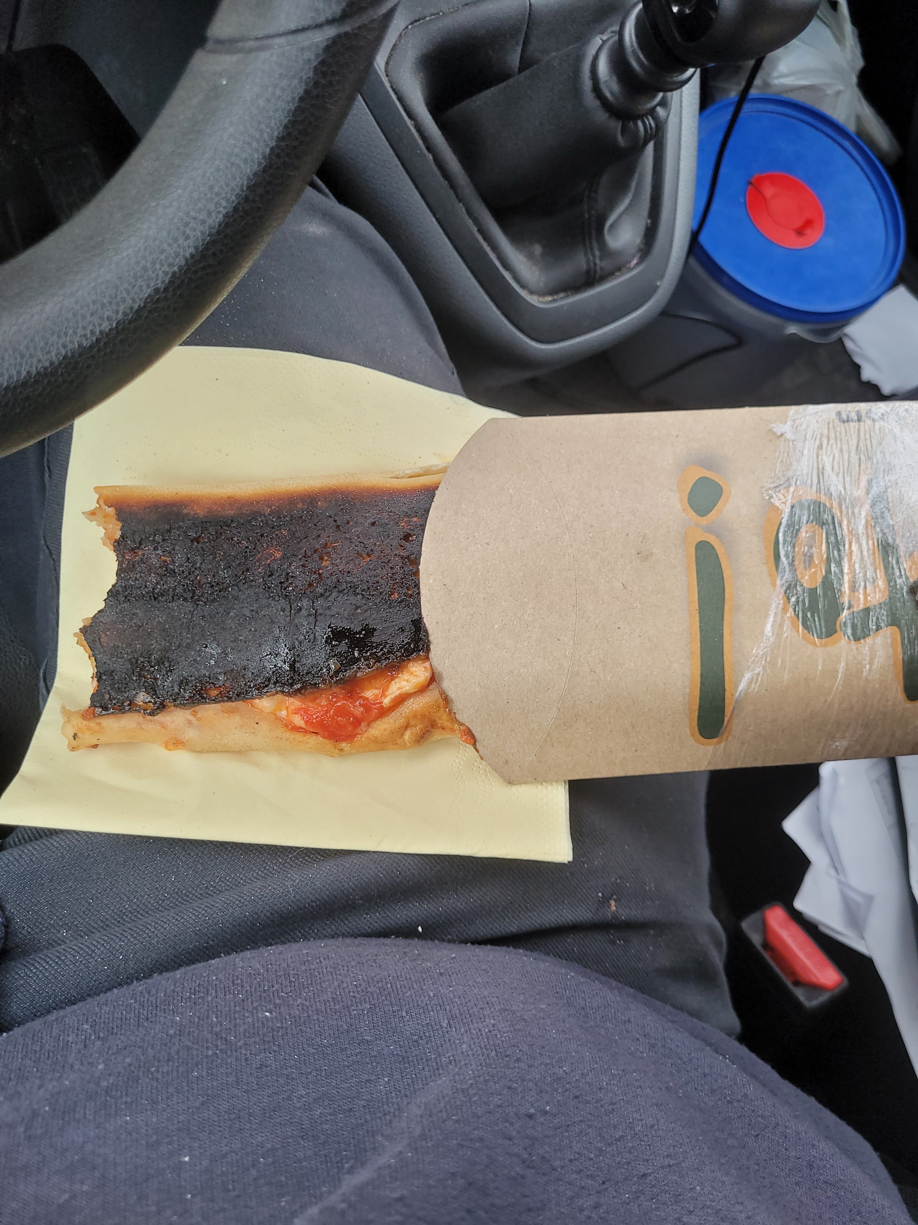 Ouvrez vos boîtes avant de partir!!! Pizza cramée!!