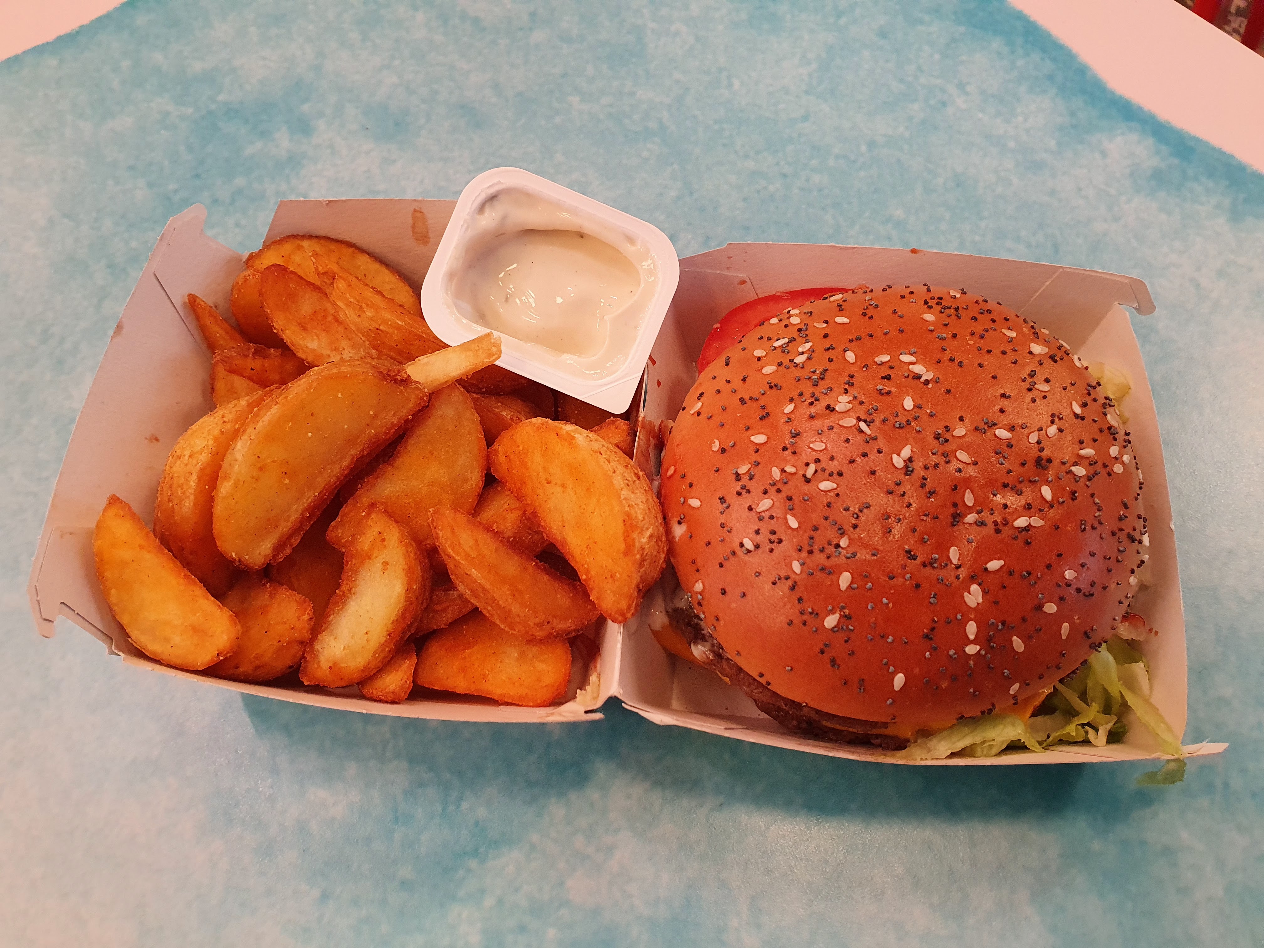 Chouette cadre et décoration rétro, mais pas de sauce mayonnaise et surtout durant tout le repas, QUE des alarmes dans tous les sens provenant de la cuisine. Alerter les employés d’une cuisson ok, mais la, ça va beaucoup trop fort et ça nous a vraiment dérangé durant notre repas ! Deuxième point négatif c’est les poubelles. Elles ne sont pas claires et peu pratique : obligation de mettre ses mains dans les déchets gras pour trier. Vraiment pas évident …