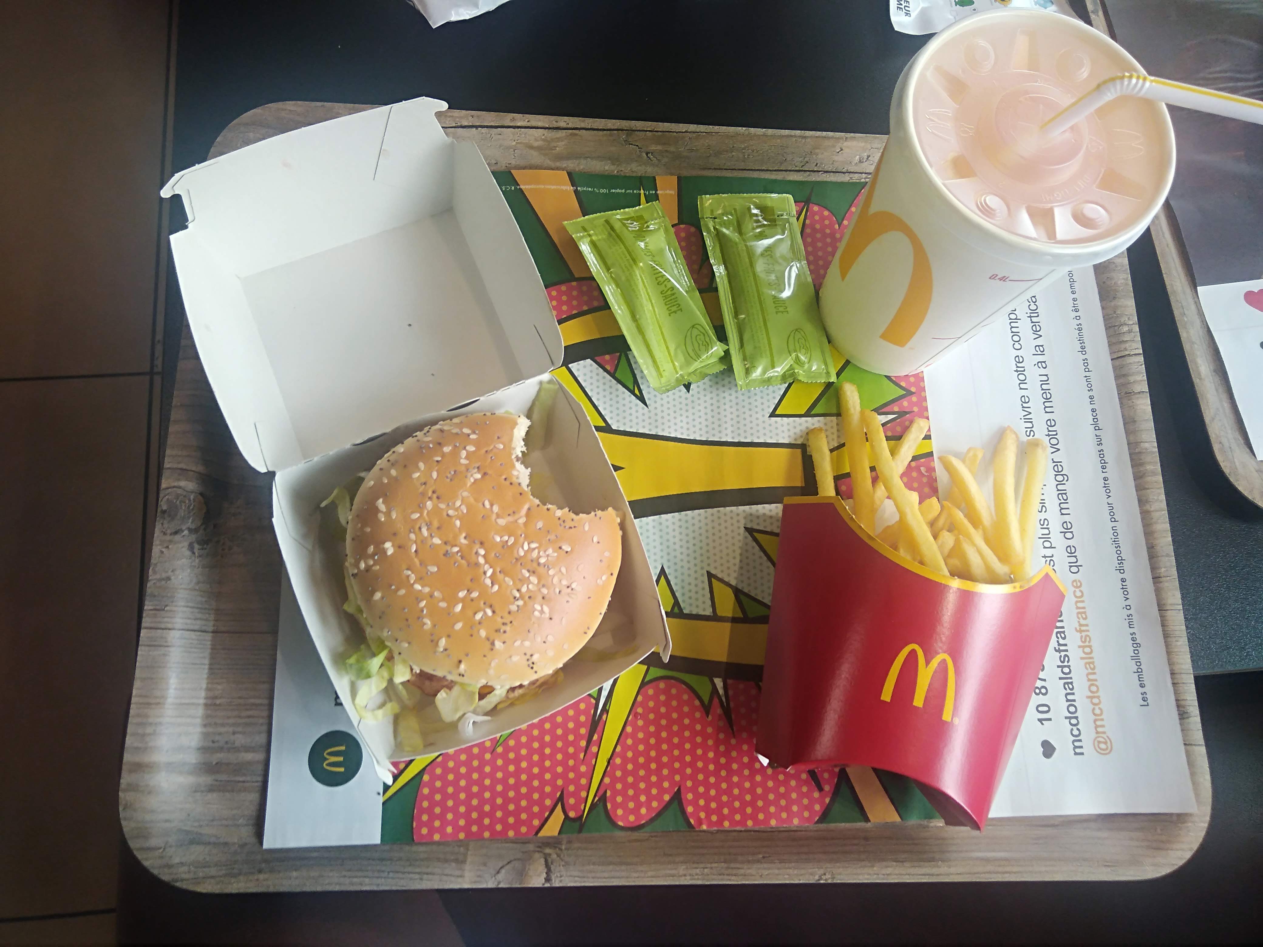 Que dire.... je suis obligé de signaler pour les futurs consomnateurs Deux fois que j'y vais et deux fois malade. La dernière pas plus tard que dimanche soir , je me retrouve le lundi cloué au lit a vomir ce repas indigeste.... Soyez prudent!!! Dommage pour McDonald's