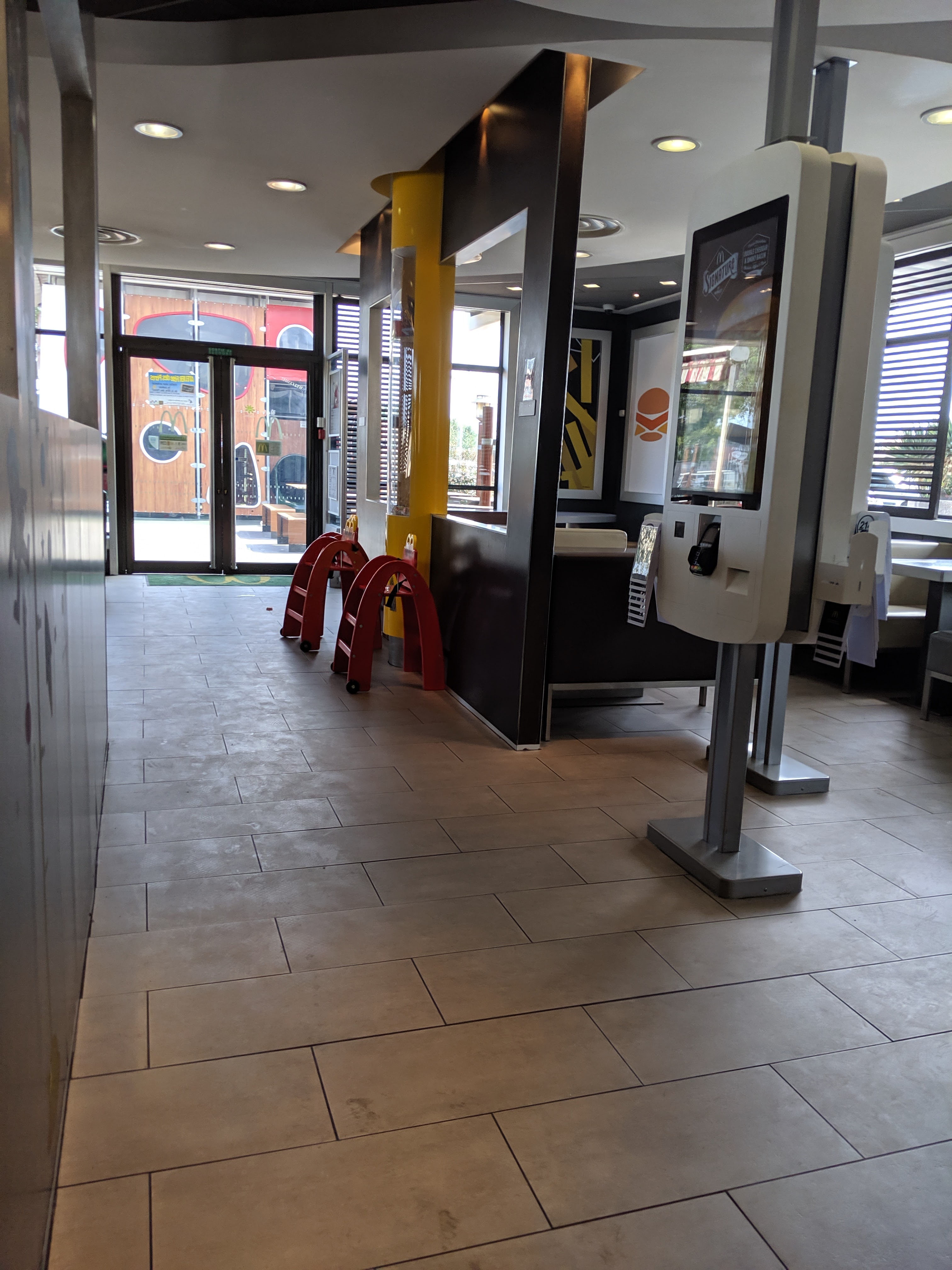 Bon OK c'est un macdo mais serveur sympathique et aux petits soins, on vous lave la table à votre arrivée et même après. On vous ouvre la porte. On vous débarrasse la table. On vous amène un livre pour notre enfant. Restaurant propre, les poubelles ne débordent pas comme dans de nombreux macdo ! Mobiliers confortables. Nous sommes arrivés à 12h30.
