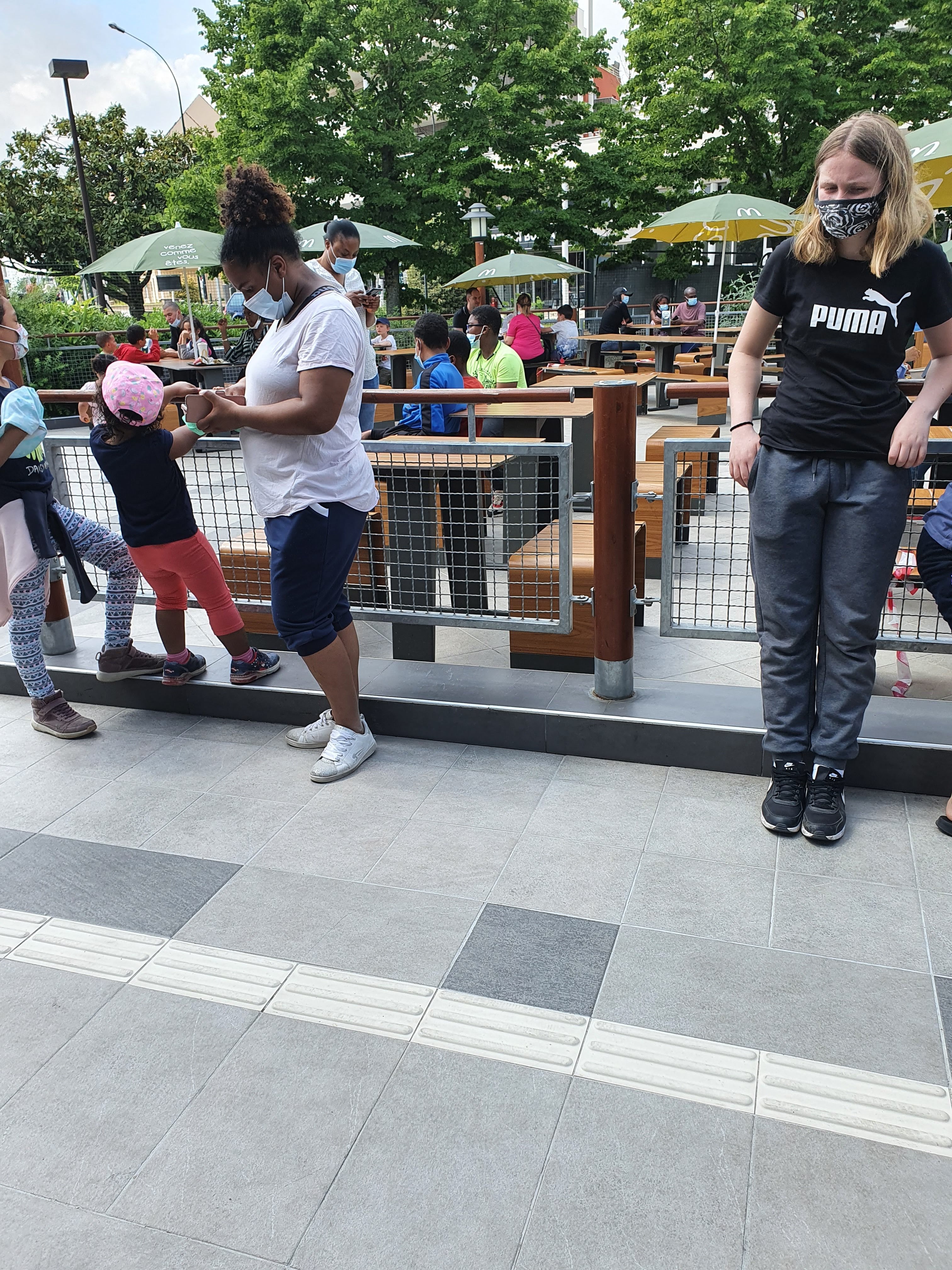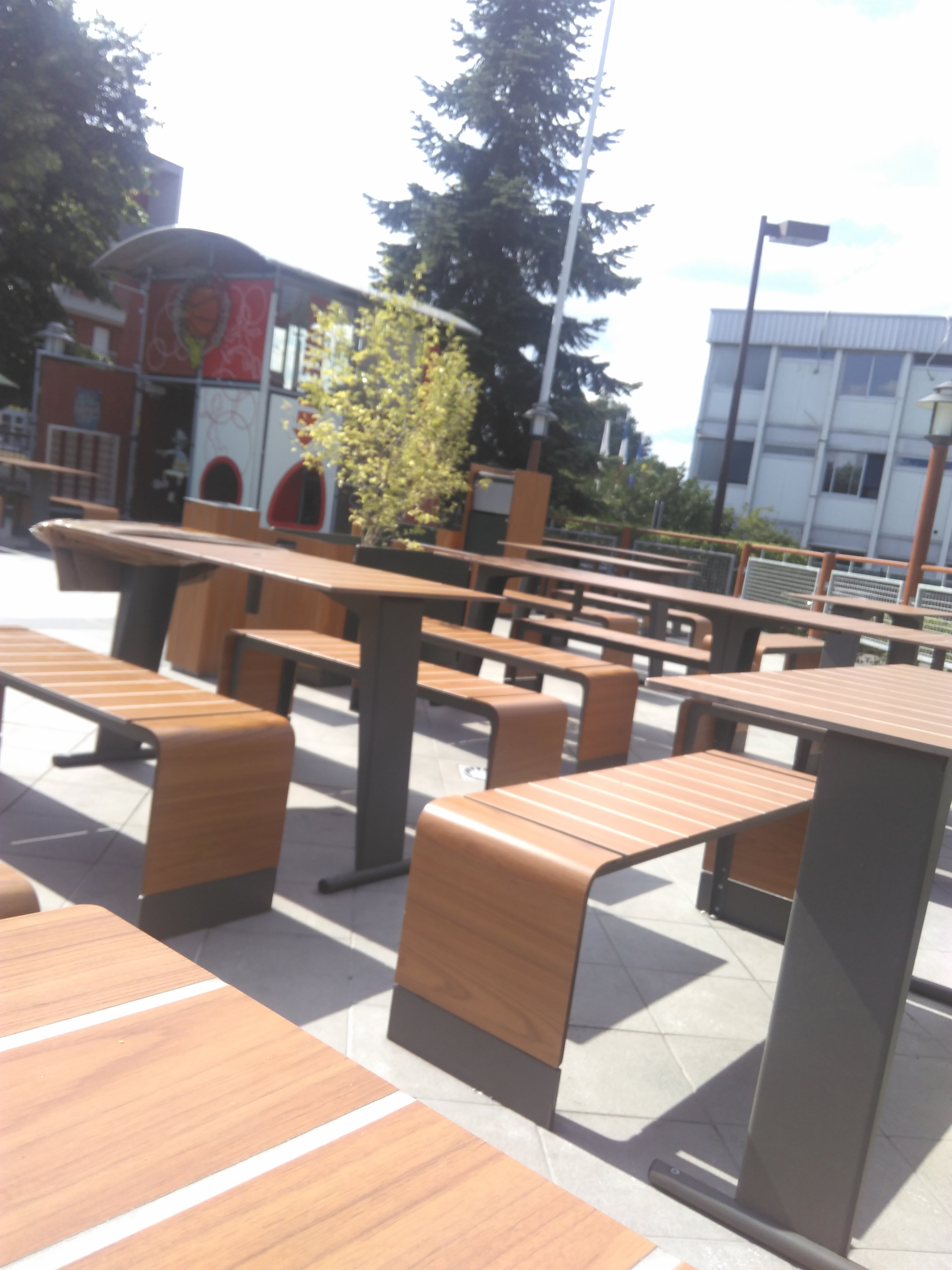Commande à la borne avec attribution d'un petit chevalet numéroté pour qu'on puisse nous apporter notre plateau en terrasse. Pas de queue à faire et détente totale sous ce soleil automnale. Petit bémol, ce jour : pas de glace... Heureusement, les frites sont bonnes !