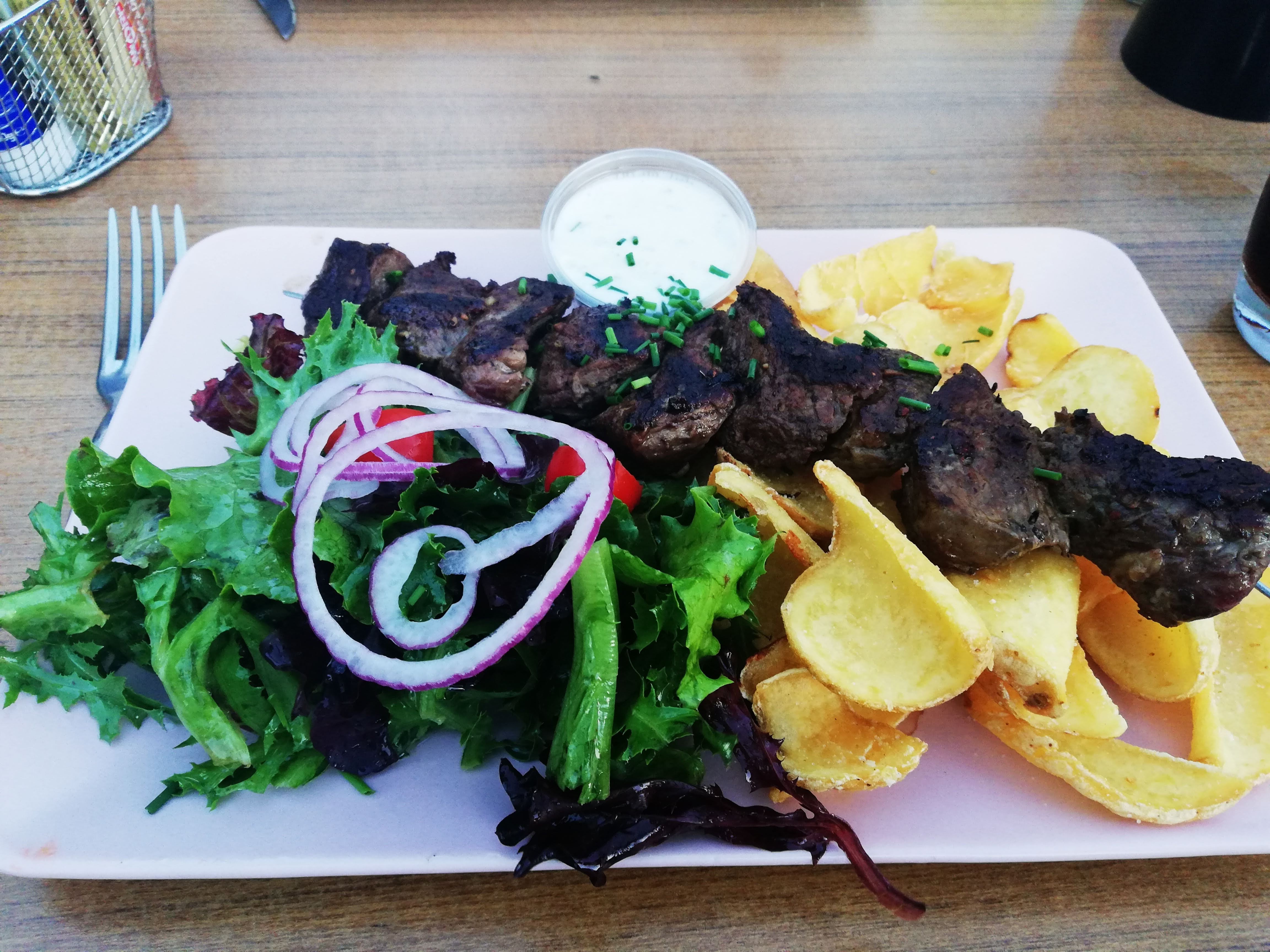 Bonne cuisine et pas chère.... Délicieuses frites et Doner avec salade ... seulement la sauce à l'ail que j'aurais ajoutée séparément .... mais cela ne devrait pas gâcher le goût ... nourriture délicieuse .....