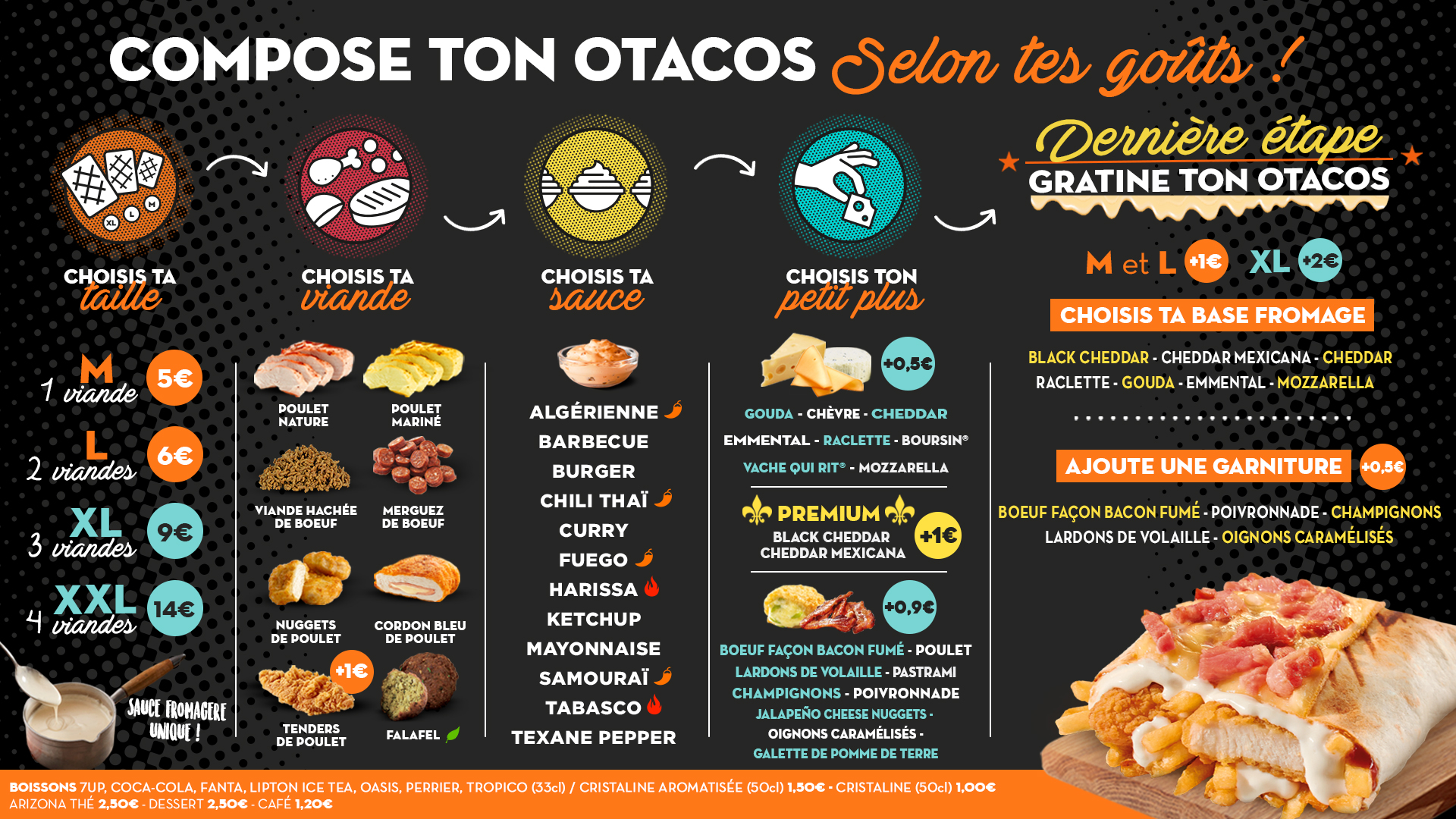 Pourquoi quand on vous commandes un tacos vous nous mettez que des frites et la viande vous nous la saupoudré ? Vous nous donnez des miettes de viandes et le restes ue des frites moi j'appelle ça du vol ca n'est pas le concept de base d'Otacos vous nous mettez pratiquement ue des frites je trouve ça scandaleux si les ingrédients sont chère vous n'avez qu'à augmenter le prix mais retirer les ingrédients comme ça j'appelle ça du vol et vous vous appelez ça comment ???