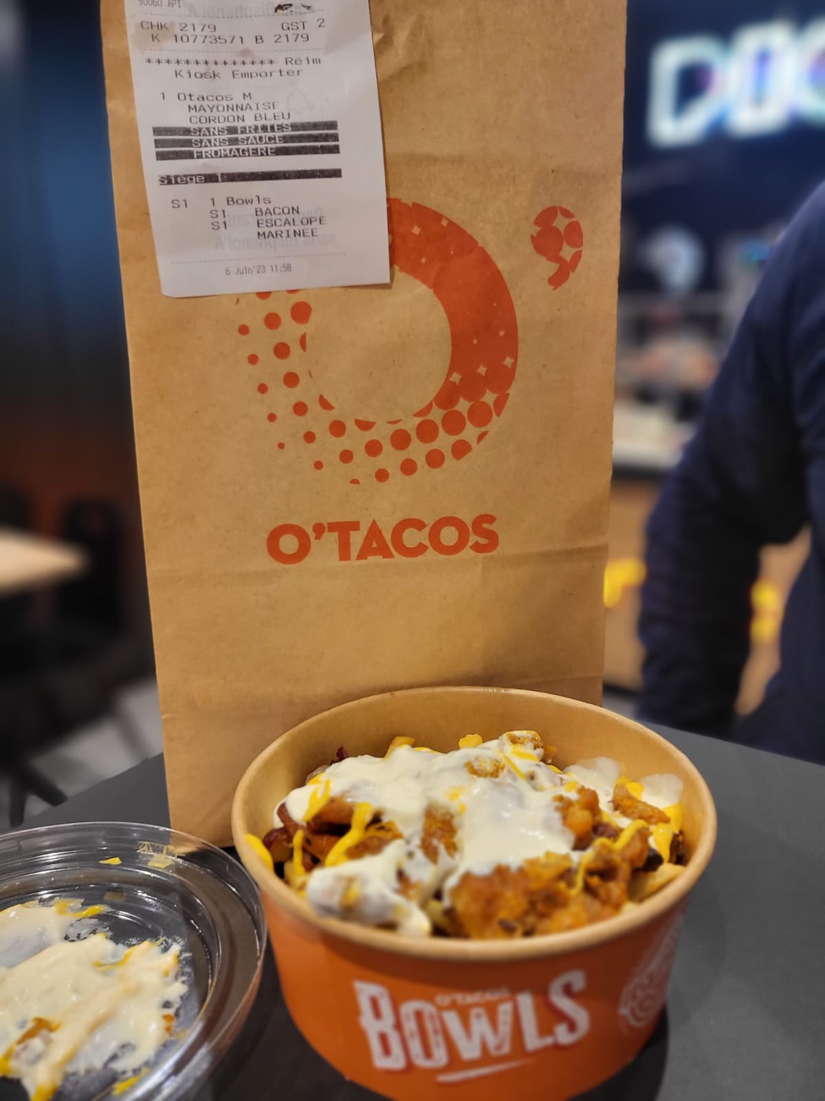 Plutôt mitigée sur cette O'tacos. Dans l'ensemble plutôt bon, mais 28€ pour 2 tacos (Un M et un XL) je trouve ça un peu excessif surtout quand le supplément et oublié dans le miens et que le sauce fromagere est quasiment inexistante. Dommage.