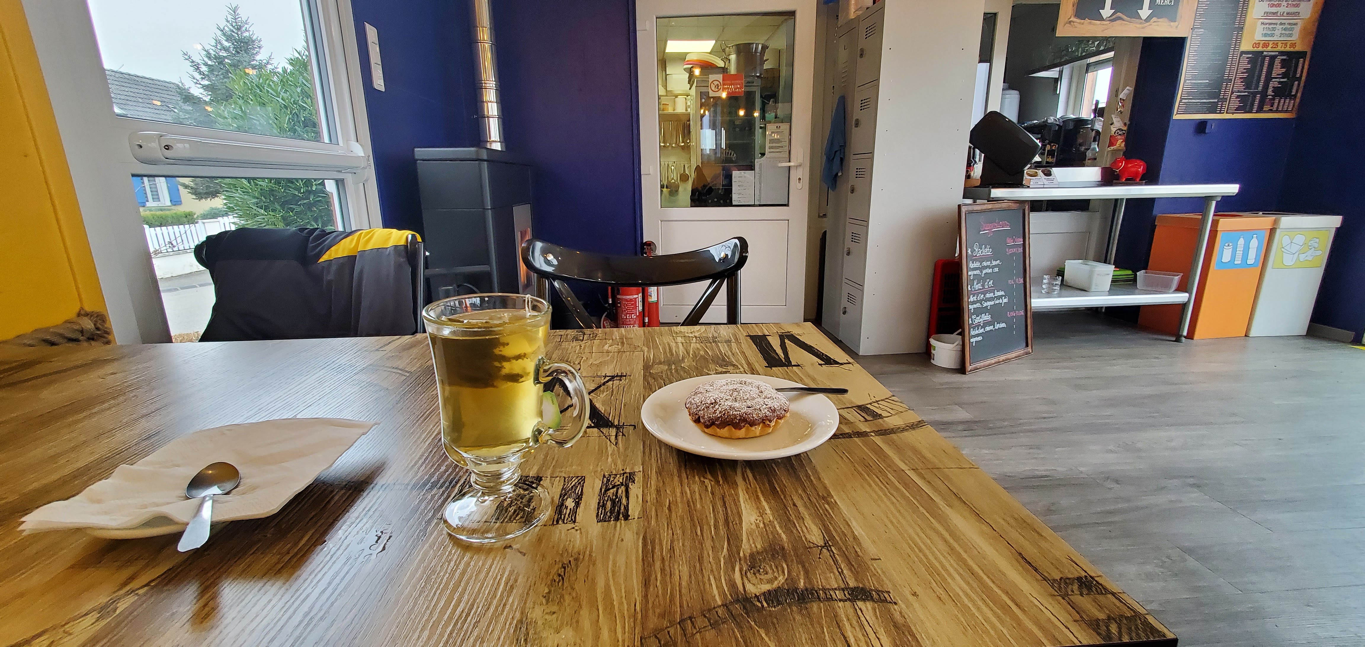 Si vous roulez sur la véloroute vers midi déjeunez ici ! Pas de détour, cadre sympathique, cuisine simple autour des pâtes, servies dans une boite cartonnée, mais très bonnes. Bière pression, part de tarte à la myrtille, café pour un prix raisonnable.