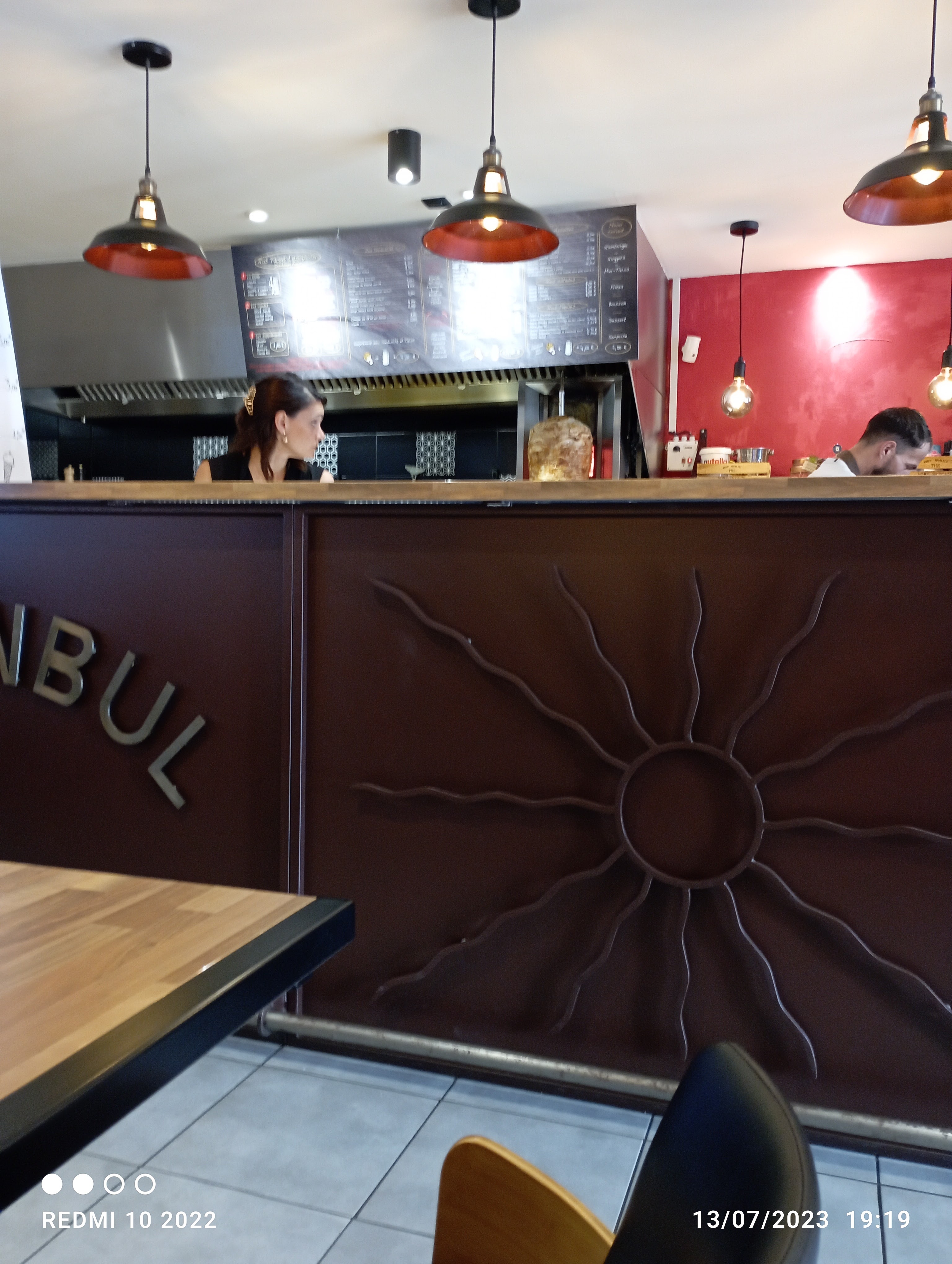Toujours une erreur au moment de régler, prouver que tu as pas pris un menu, il faut du coup compter avant si plusieurs, quand on te fait pas payer la note en double par CB et par carte resto max 19€... Bizarre Toujours des erreurs autour de 5 € ... Ça serait une fois ok, mais 2 fois 3 fois mais là bon je compte plus ... Et pour le sourire on repassera ...ou pas !! Et se taper Hanouna 🤪🤮 dommage que l'autre kebab soit fermé, LE CHOIX c'était top ! Moins cher, meilleur et Tu avais pas d'argent pas grave tu pouvais repasser qd tu veux pour payer sans laisser de nom ... Mais oui Istanbul hésite pas à faire payer double sans sourire !! Décevant !!! Un seul Point positif pour la déco
