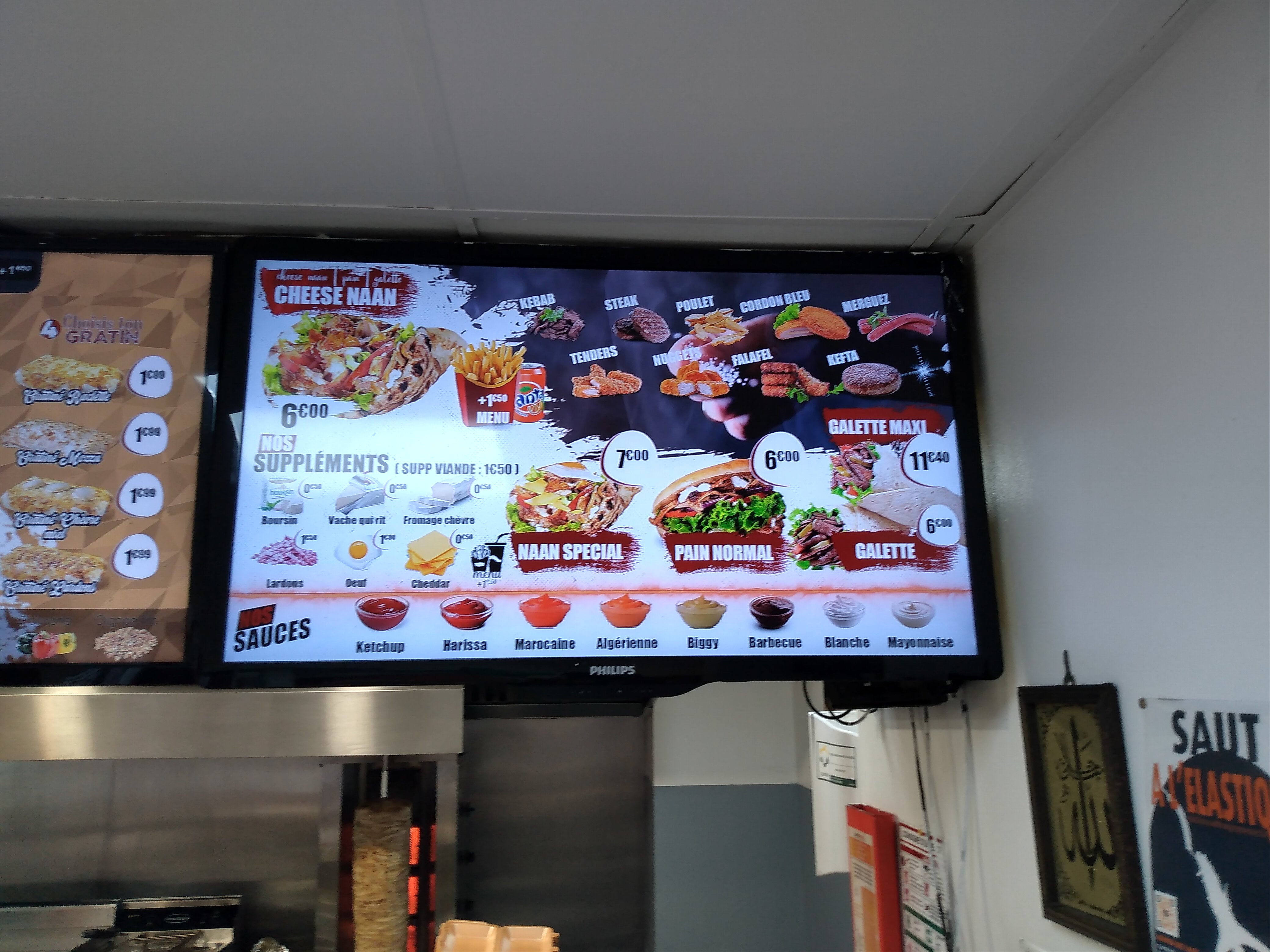 Pas du tout organisé ce qui explique l'attente assez longue pas très accueillant non plus à vrais dire, de plus kebab très peu garnie, plus de pain que de garniture, et viande à peine tiède, perso je n'y retournerais pas.