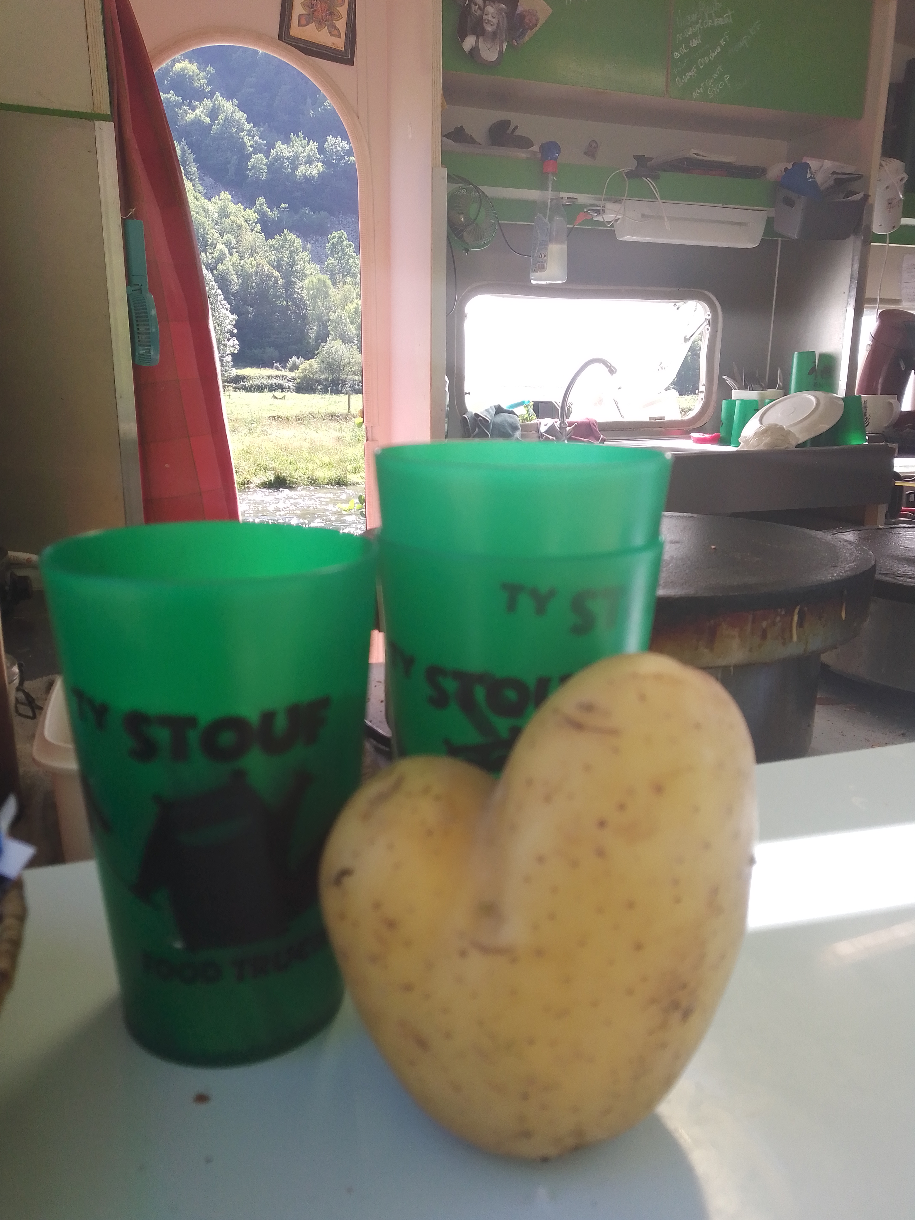 Quel plaisir de manger une crêpe sur une aire de pique-nique au bord de la rivière. D’ailleurs, on les trouve délicieux et l’attention est très sympathique.